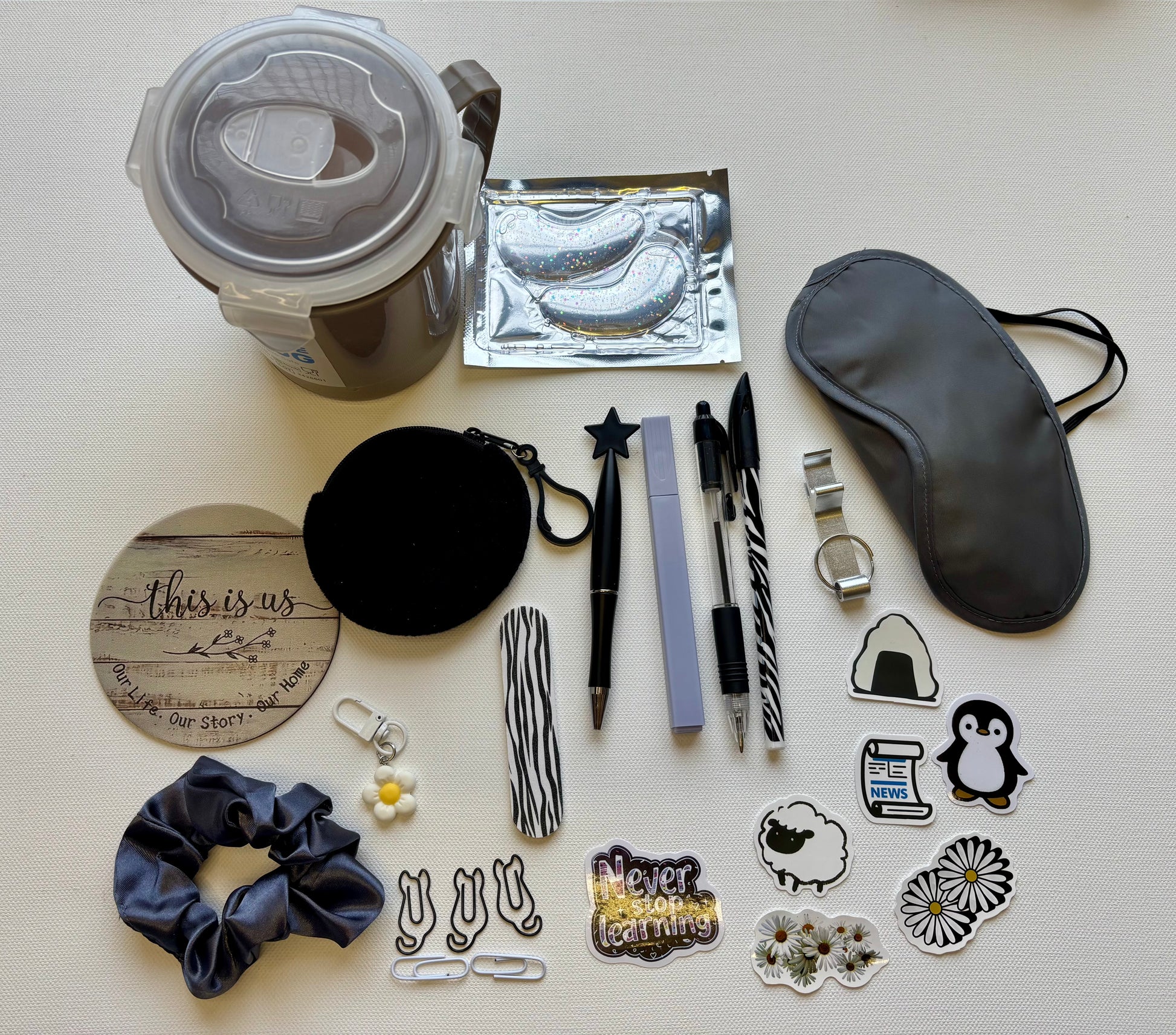 Black White & Grey bundle Gift Set including Stationary and self care products