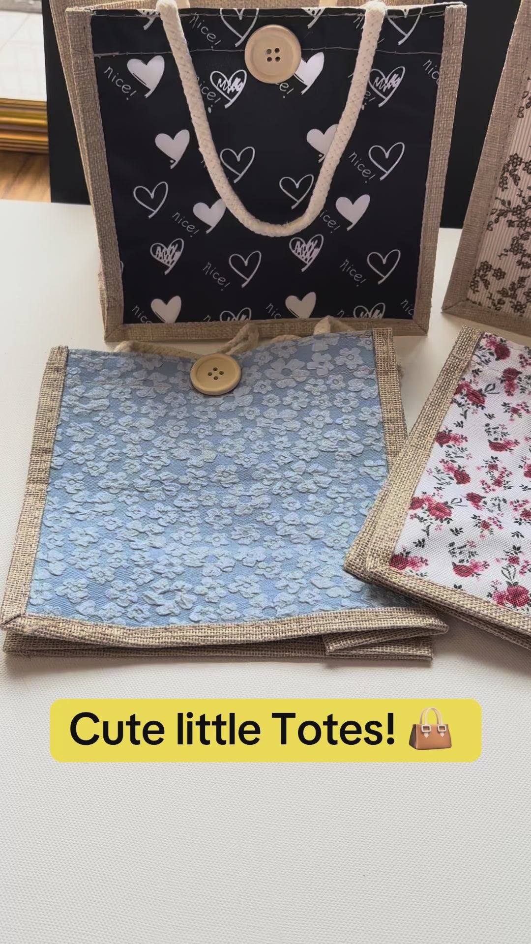 * Cute Design: These mini totes feature a single side design with floral and heart motifs. Perfect for adding a touch of fun to your everyday look. 🌸