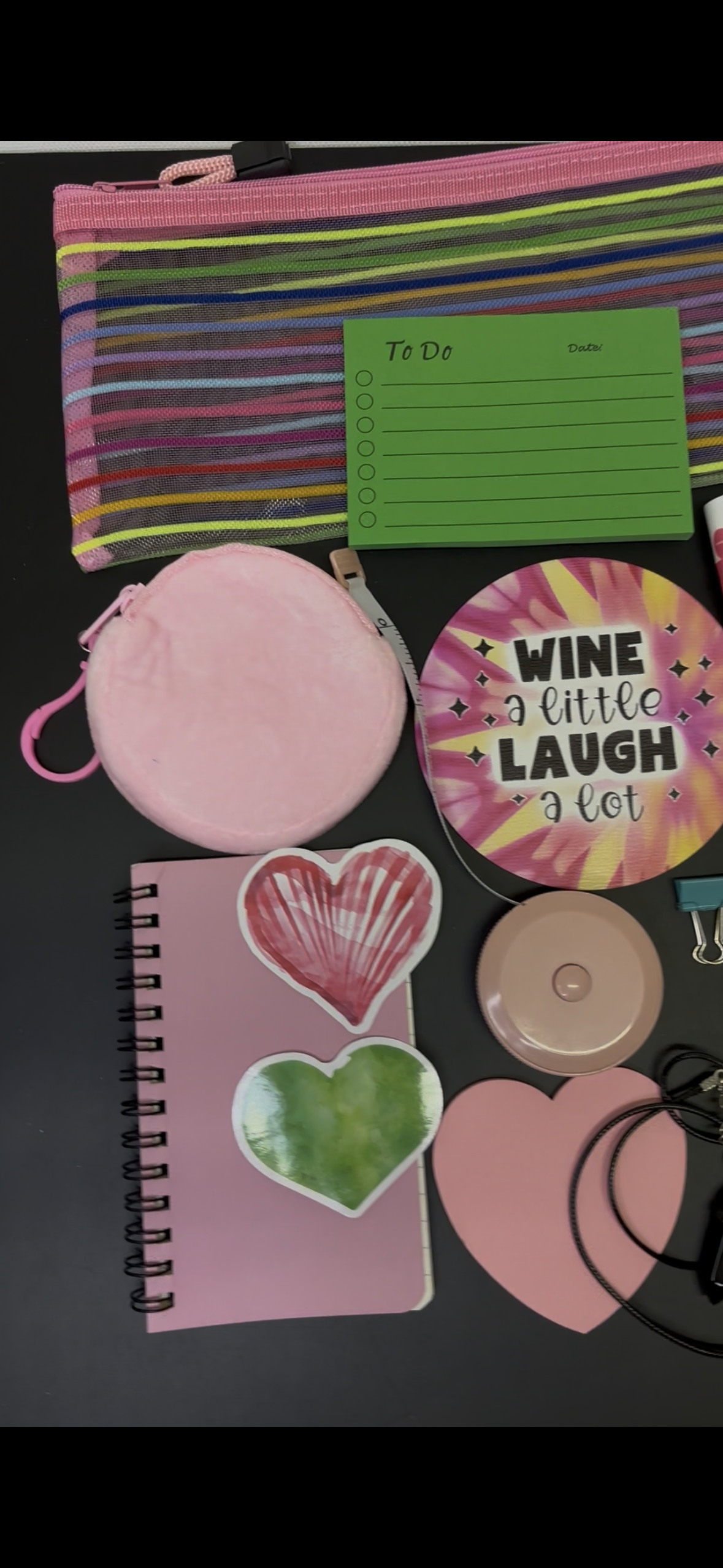 measure, clips, pendant, heart sticky notes, and limerick’s notes. It also