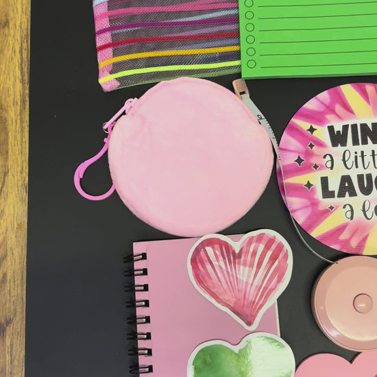 Pink and Green Gift Set of Stationary and Personal Care Items Includes Notepads Pens and Decorative Accessories